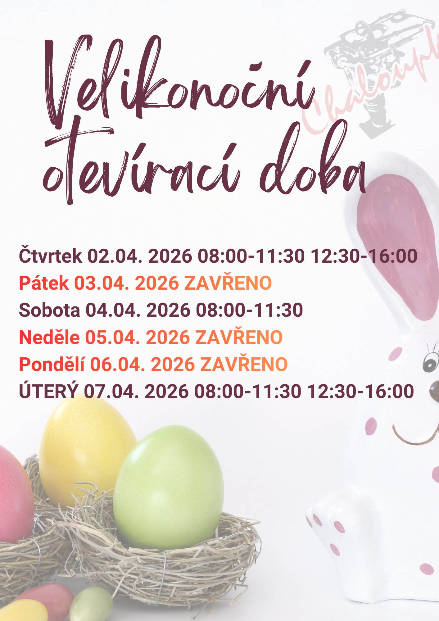 Pondělí–pátek: 8:00-11:30, 12:30-16:00 hod.